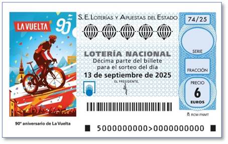 Per questa particolare estrazione della Lotería Nacional, 10 milioni di biglietti saranno venduti attraverso la rete commerciale delle Loterías, permettendo così al 90° anniversario de La Vuelta di raggiungere ogni angolo della Spagna. L’estrazione del 13 settembre metterà in palio un totale di 42 milioni di euro in premi: 600.000 euro per il 1° premio per serie e 120.000 euro per il 2° premio per serie.