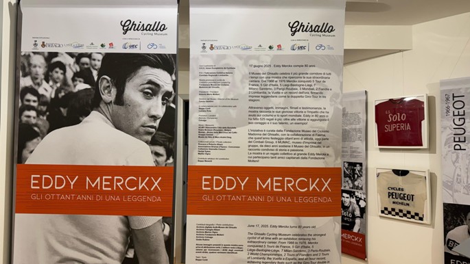 Il Museo del Ghisallo celebra il più grande corridore di tutti i tempi con una mostra che ripercorre la sua straordinaria carriera. Dal 1966 al 1976 Merckx conquistò 5 Tour de France, 5 Giri d’Italia, 5 Liegi-Bastogne-Liegi, 7 Milano-Sanremo, 3 Parigi-Roubaix, 3 Mondiali, 2 Fiandre e 2 Lombardia, la Vuelta e un record dell’ora, firmando imprese leggendarie come la doppietta Giro-Tour in tre stagioni.