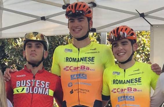 E sarà il gruppetto che in pratica andrà a decidere la corsa con i due alfieri della SC Romanese che vanno a condividere la vittoria con leggero margine, 10″, sugli immediati inseguitori regolati allo sprint da Paolo Favero (Bustese Olonia) che quest’anno ha già assaporato la gioia della vittoria.