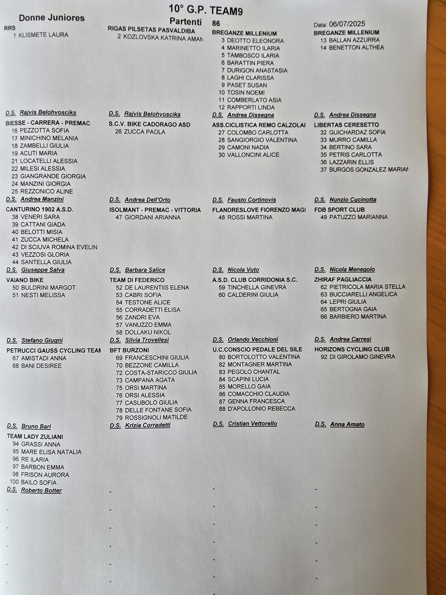 Ma la Orsi è stata molto brava a tenere testa a tutte le avversarie imponendosi allo sprint precedendo Giulia Zambelli (Team Biesse Carrera-Zambelli) e la Campionessa d’Italia cronometro juniores Elena De Laurentiis del Team Di Federico