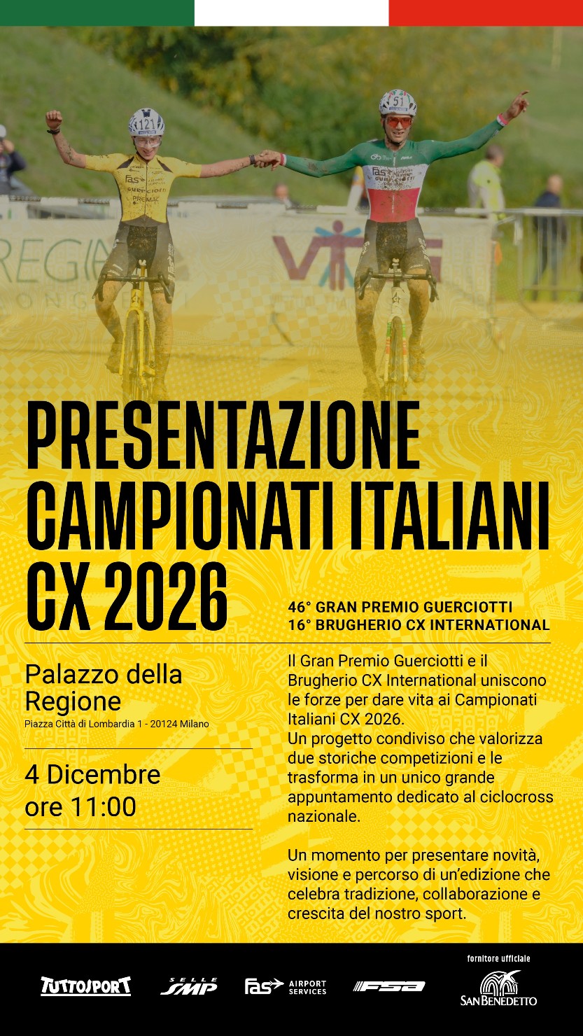 Presentati a Milano nel Palazzo sede della Regione Lombardia i prossimi Campionati Italiani specialità Ciclocross che si disputeranno al Parco Increa di Brugherio in provincia di Monza e Brianza alle porte di Milano.
