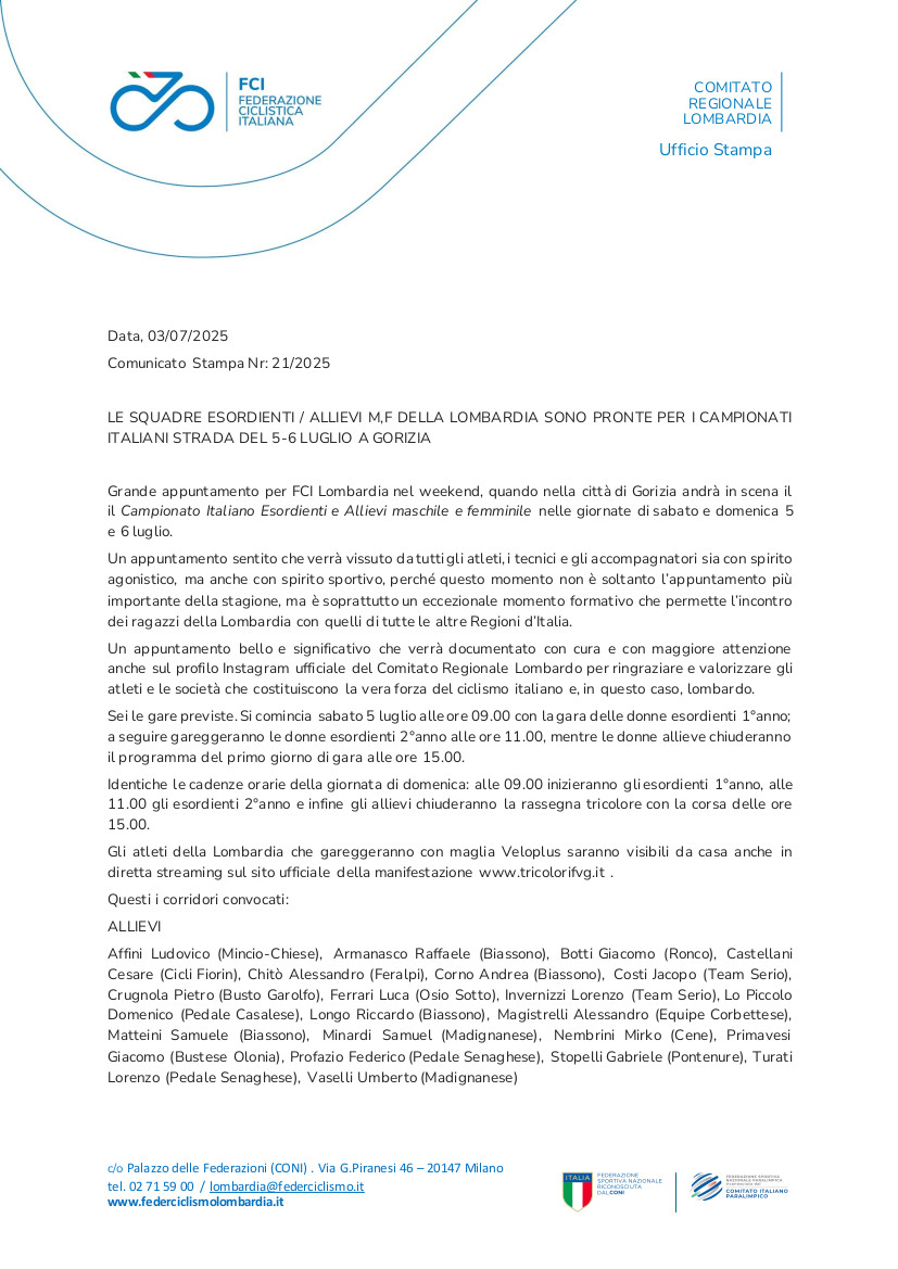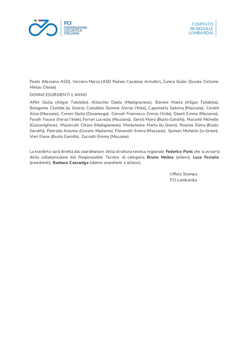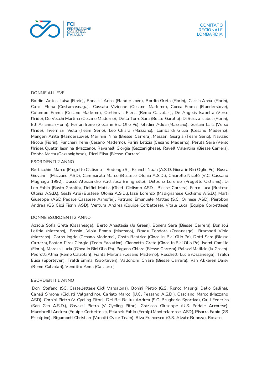 Le Rappresentative lombarde ai Tricolori giovanili di Gorizia