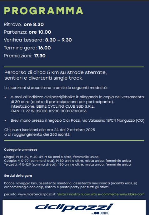 circuito del Master Cicli Pozzi Mtb. Vi aspettiamo il 5 ottobre a Monguzzo rimarcando che i bikers