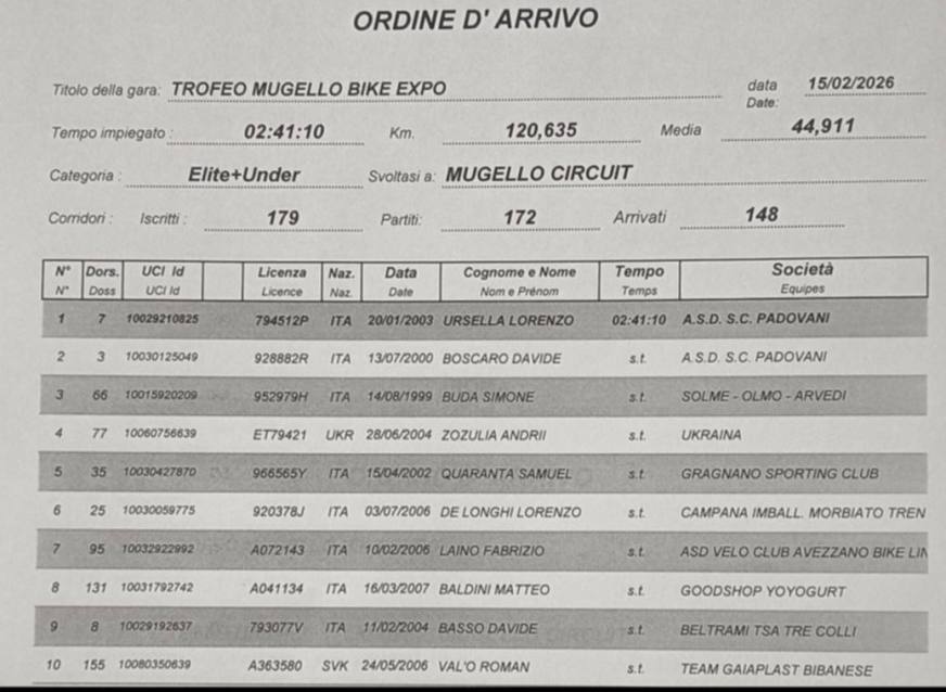 Ordine d’arrivo Trofeo Mugello Bike Expo :