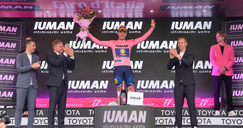 Maglia Rosa, leader della Classifica Generale, sponsorizzata da IUMAN – Intimissimi Uomo – Mads Pedersen (Lidl-Trek)
