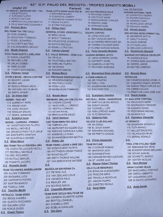 Ordine Arrivo del 62° GP Palio del Recioto – Trofeo Zanotti Mobili: