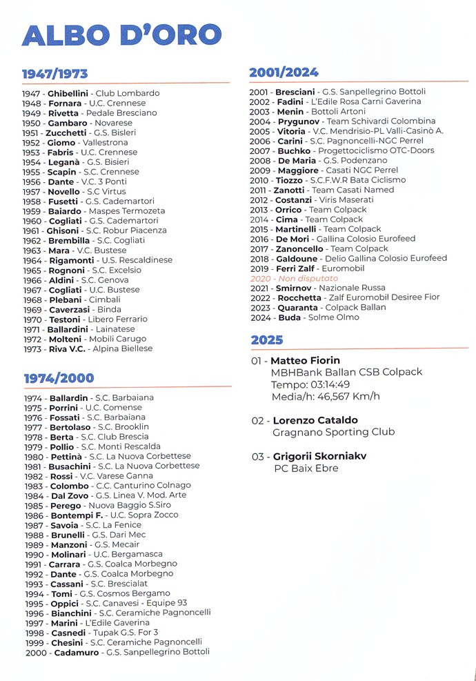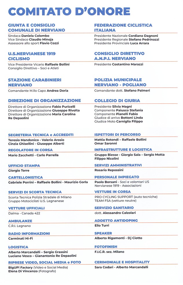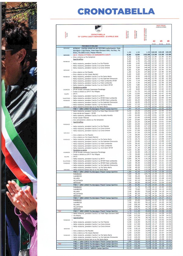 Sabato 25 Aprile 2026 si disputerà a Nerviano la 79° edizione della Coppa Caduti Nervianesi, gara riservata alla categoria degli Elite-Under 23.