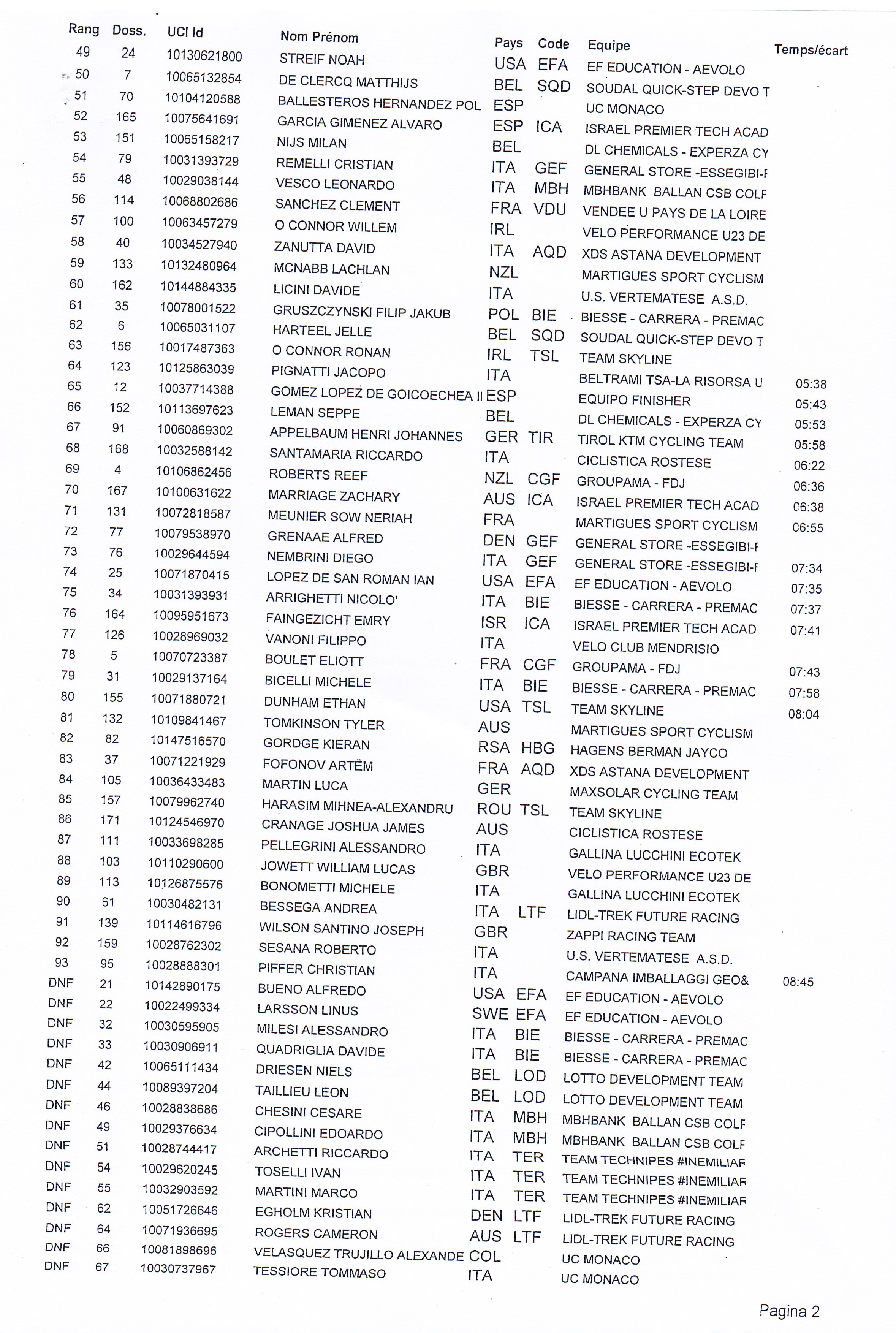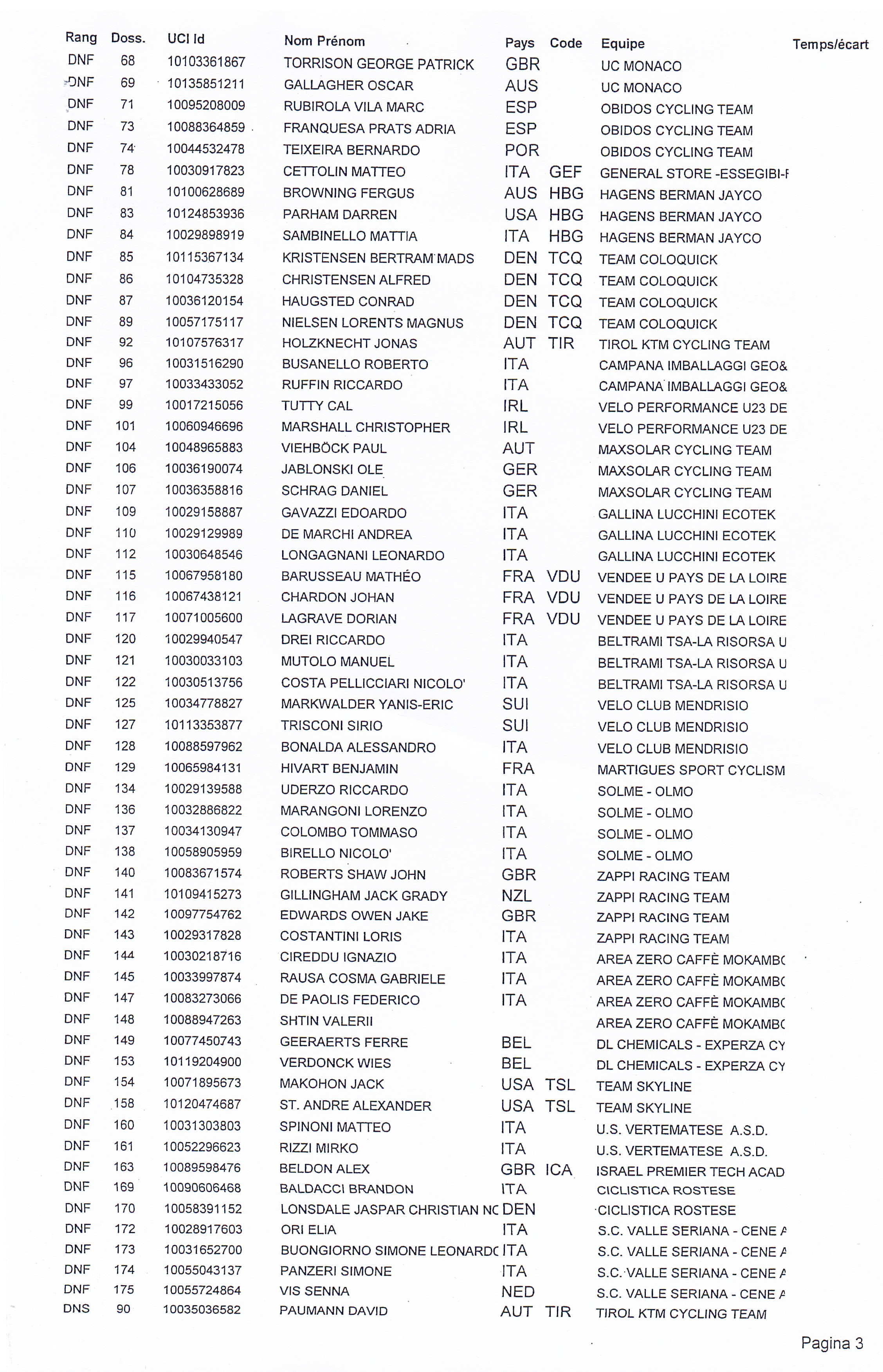 1)Callum Thornley (Gbr-Red Bull-Bora Hansgroe) km. 170,6 in 3h46’40” media kmh 45,129;