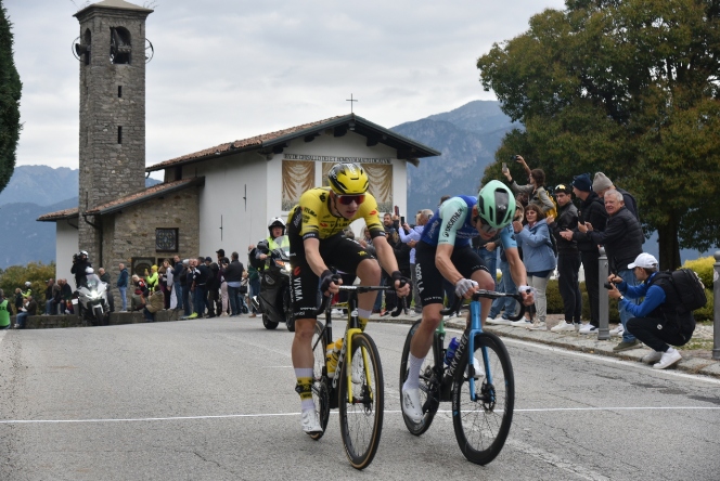Sul Ghisallo (Alt 755 slm) una prima selezione, al GPM di fianco al Santuario della Madonna del Ghisallo transita per primo Louic Boussemaere (Bel-Decathlon) mentre la corsa inizia a perdere concorrenti e i fuggitivi sull’ultima salita, la Marconaga di Ello, rimangono in 5 infine i quattro primi classificati.