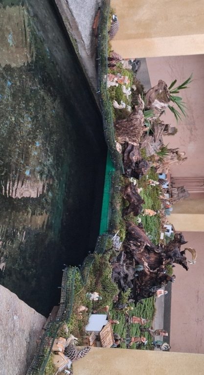 Sono circa cinquanta le statue che ornano il Presepe che sembra galleggiare sull’acqua in uno scenario unico.
