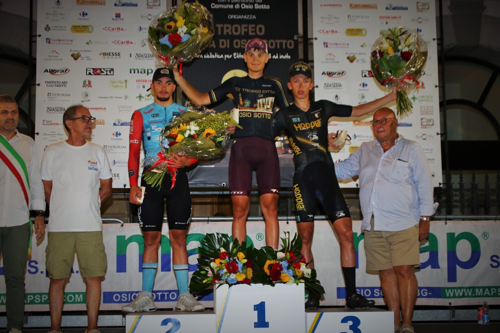 Elia Tovazzi, 23 anni compiuti il 6 agosto, trentino di Volano in livrea del Team G.C. Sissio festeggia con un giorno di anticipo il suo 23° compleanno imponendosi nel 13° GP Industria Commercio Artigianato organizzato ad Osio Sotto nel bergamasco dalla locale “Unione Ciclistica Osio Sotto 1969”.