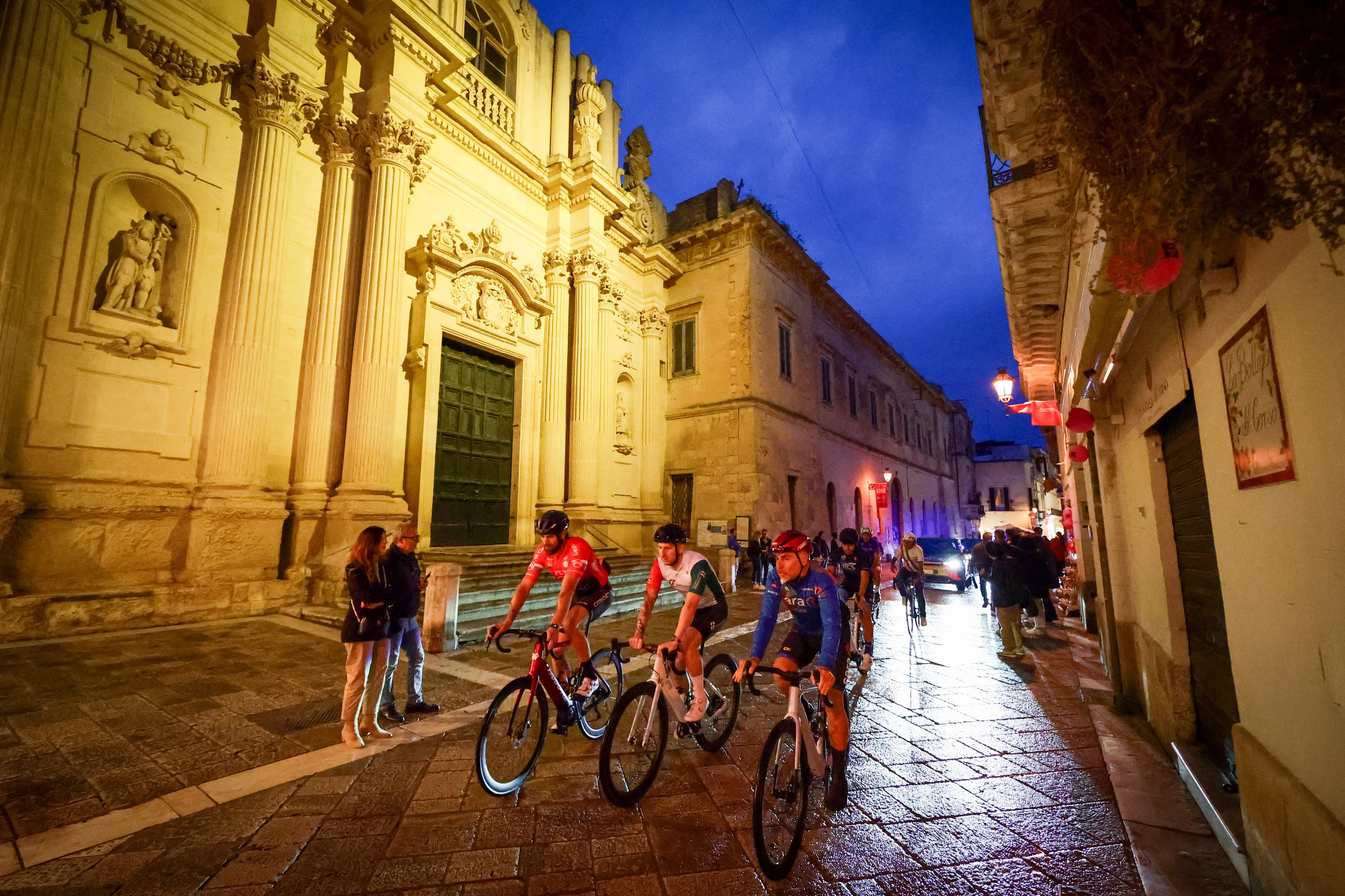 Dopo la presentazione in piazza Sant’Oronzo, i capitani sono saliti in sella all’imbrunire per una sfilata sulle strade ancora umide dell’acquazzone che aveva investito Lecce il pomeriggio: un assaggio della poesia che li aspetta, da oggi, sulle strade di tutta Italia, per un viaggio all’insegna delle emozioni e della sostenibilità. Il percorso li ha portati all’open village del Giro d’Italia, Giroland, dove non hanno perso l’occasione per salire sul palco ed essere applauditi dalla folla.