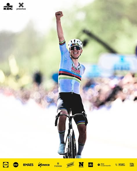 L’ingresso a Oudenaarde è stato trionfale: braccia al cielo e sorriso incredulo per uno dei corridori più completi della sua generazione.