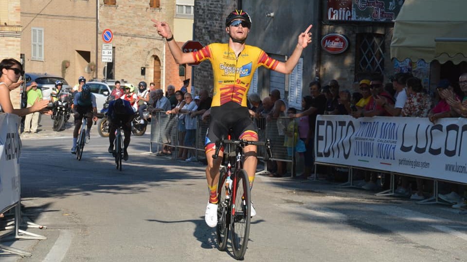 Dopo una serie di fughe neutralizzate nei primi 80 chilometri, la svolta in salita tra Petritoli e Monte Vidon Combatte: Paltrinieri, Samuele Uguccioni (Fior di Grano – Tris Stampi) e Sacha Salomone (CPS Professional Team) sono filati via dal gruppo dei migliori con 45″ di vantaggio. Nell’ultima salita, Paltrinieri ha attaccato in progressione e vinto in solitaria.