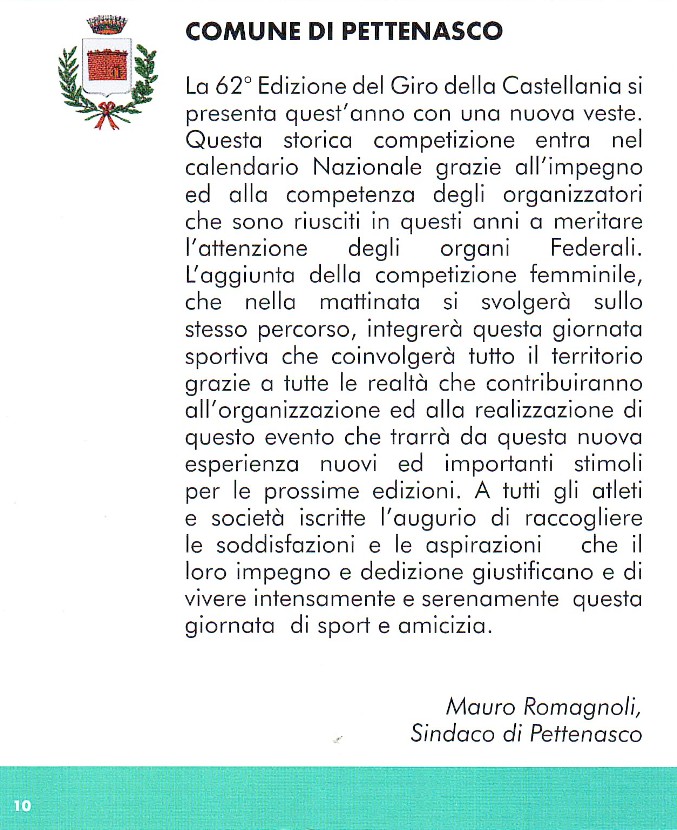 Grande soddisfazione espressa dalla Presidente Ambrosi per l’elevazione al rango di gara Nazionale del Giro della Castellania Juniores che a tutt’oggi conta già 173 iscritti