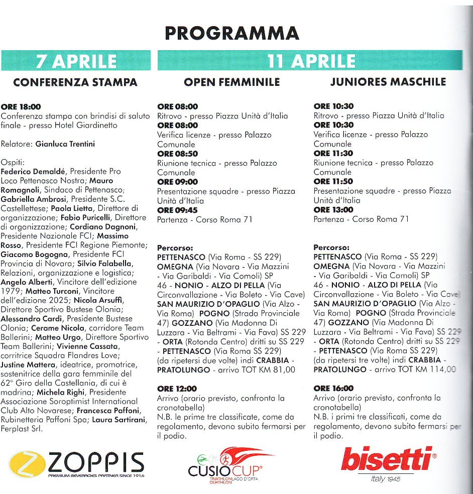Presente alla Conferenza Stampa condotta dal Collega Gianluca Trentini i massimi vertici del ciclismo Nazionale col Presidente Federale Cordiano Dagnoni, il Presidente della Federciclismo piemontese Massimo Rosso, il Presidente della Federciclismo di Novara Giacomo Bogogna, i Sindaci di Pettenasco Mauro Romagnoli, di Castelletto sopra Ticino Massimo Stilo, Federico Demaldè presidente della Pro Loco Pettenasco Nostra, Silvio Falabella del Gruppo Giovani Pro Loco Pettenasco Nostra-A&Team.