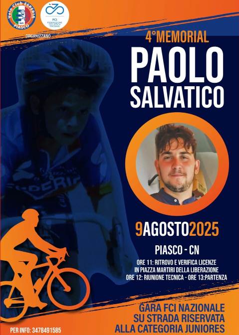 Dopo il successo nell’organizzazione dei Campionati Italiani Juniores maschile e femminile nel 2022, e della gara nazionale élite femminile nel 2023, quest’anno il team diretto da Bruno Salvatico vuole fare un salto di qualità con la classica Piasco-Lemma, 4° Memorial Paolo Salvatico, che si trasforma quest’anno in gara nazionale. In programma sabato 9 agosto 2025, vedrà al via i migliori talenti italiani confrontarsi con giovani promesse internazionali provenienti da Francia e Svizzera, su un tracciato impegnativo ormai consolidato con 6 passaggi sulla Colletta di Rossana (salita che vedrà passare tra un mese anche la Vuelta Espana) a fare da preludio all’arrivo in salita a Lemma.