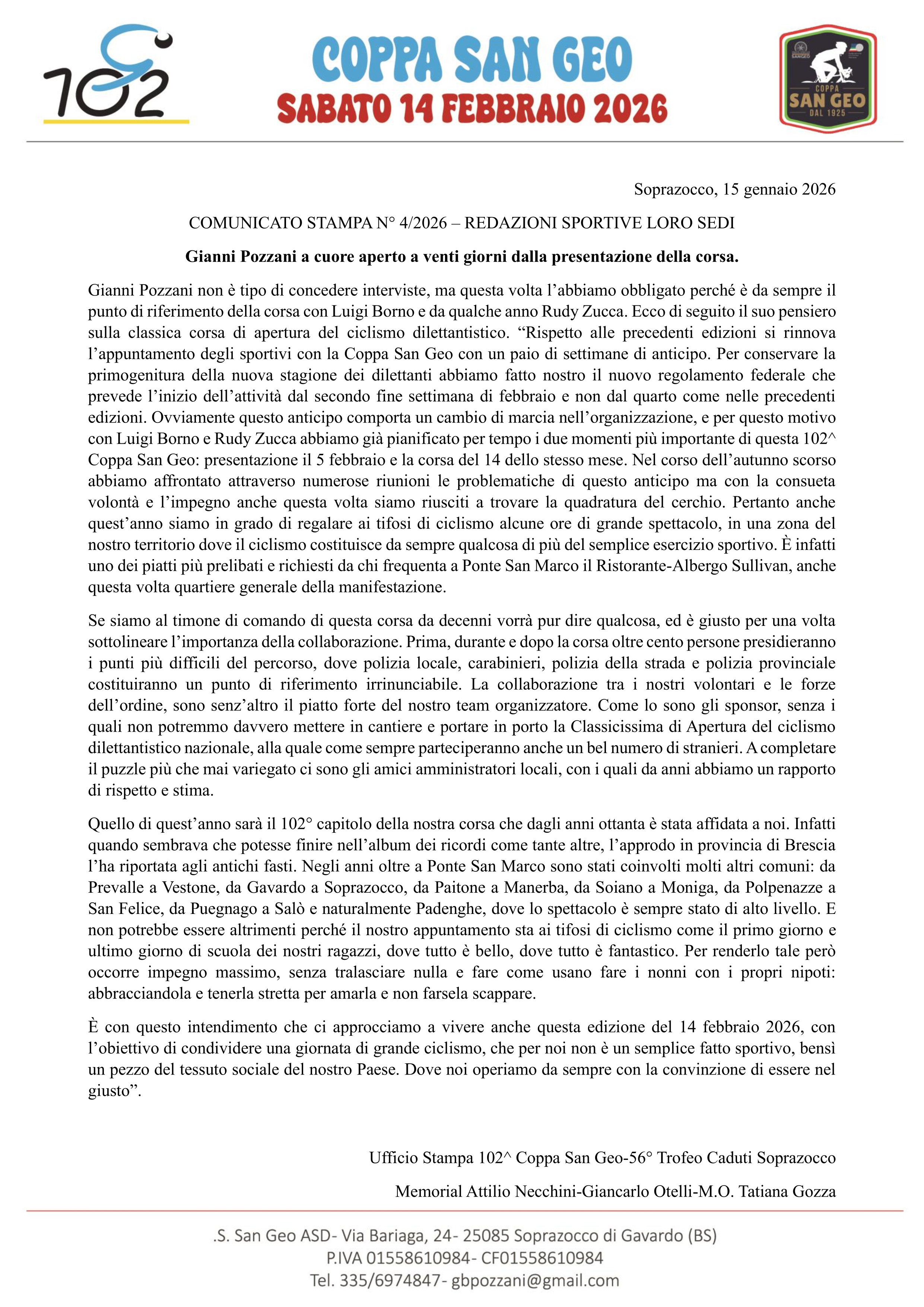 .Intervista e Comunicato Stampa a cura di : Angiolino Massolini
