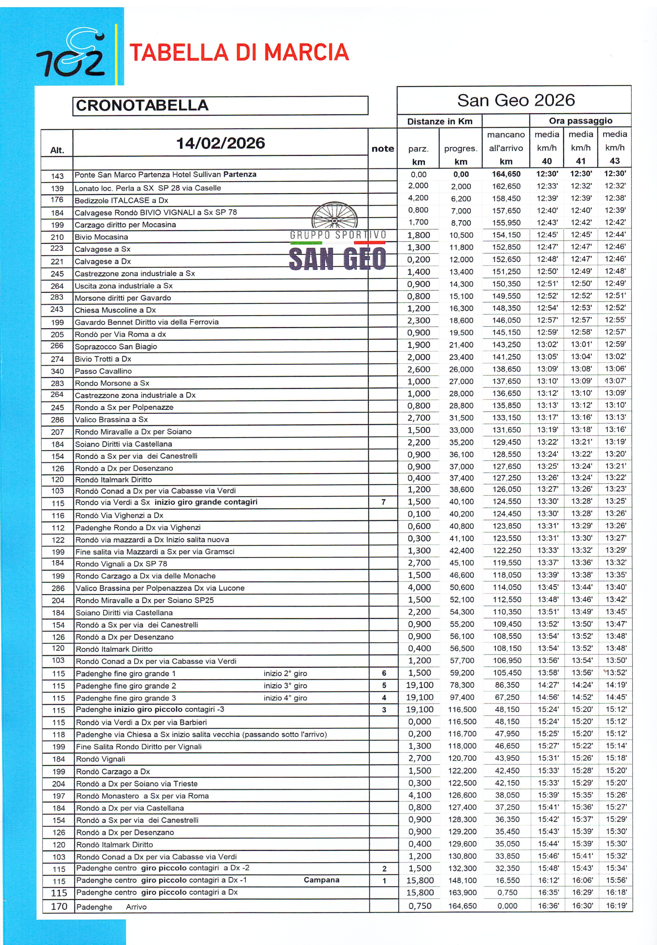 102° Coppa San Geo : Elenco Iscritti e Percorso