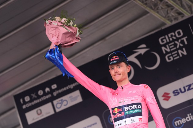 Maglia Rosa, leader della Classifica Generale, sponsorizzata da Mimit – Ministero delle Imprese e del Made in Italy – Luke Tuckwell (Red Bull – Bora – Hansgrohe Rookies)