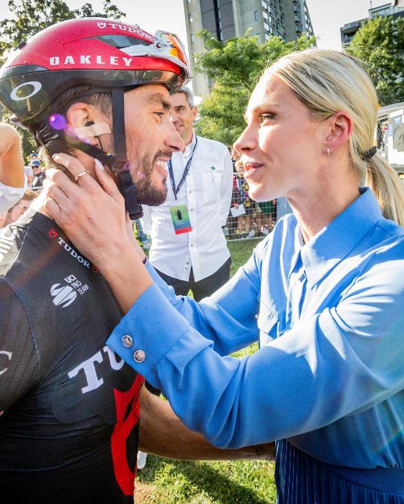 Bello a fine gara il quadretto famigliare tra Alaphilippe e la sua compagna entrambi molto emozionati per questa vittoria tanto attesa, inseguita e finalmente conquistata.