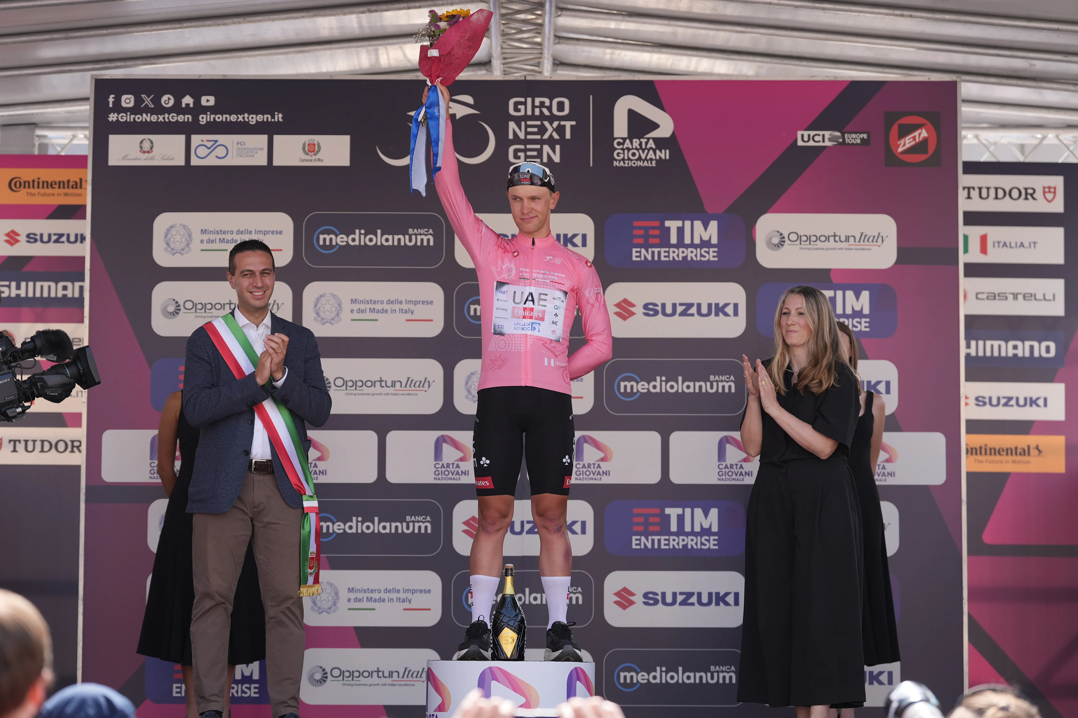 E’ lo slovacco Matthias Schwarzbacher della corazzata emiratina UAE a firmare da vincitore la prima tappa del Giro Next Gen edizione 2025 iniziato oggi da Rho nel milanese con una cronotappa di km 8,4 conclusasi sul filo di pochissimi secondi a favore dello slovacco che ha preceduto il belga Matisse Van Kerkhove (Team Visma Lease a Bike-Development) che guida la classifica dei giovani e, al terzo posto l’inglese Callum Thornley (Red Bull-Bora Hasgrohe) a 3”,