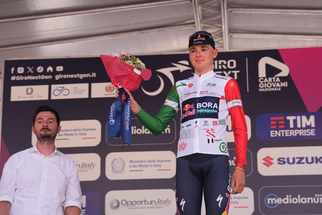 La Maglia Azzurra e Maglia Bianca, Matisse Van Kerckhove, ha detto: “Arrivare secondo in una tappa del Giro Next Gen è incredibile. È ancora più speciale essere sul podio qui che in qualsiasi altra corsa: sembra davvero il Giro d’Italia. Le sensazioni in gara sono state ottime. Parto sempre forte e sono felice che questa caratteristica mi abbia permesso di conquistare la Maglia Azzurra. Il mio primo obiettivo in questa corsa è aiutare il nostro capitano Jorgen Nordhagen. Sono un grande fan di Wout van Aert, il mio eroe d’infanzia, quindi vorrei riuscire a svolgere il mio lavoro per la squadra come lui”.