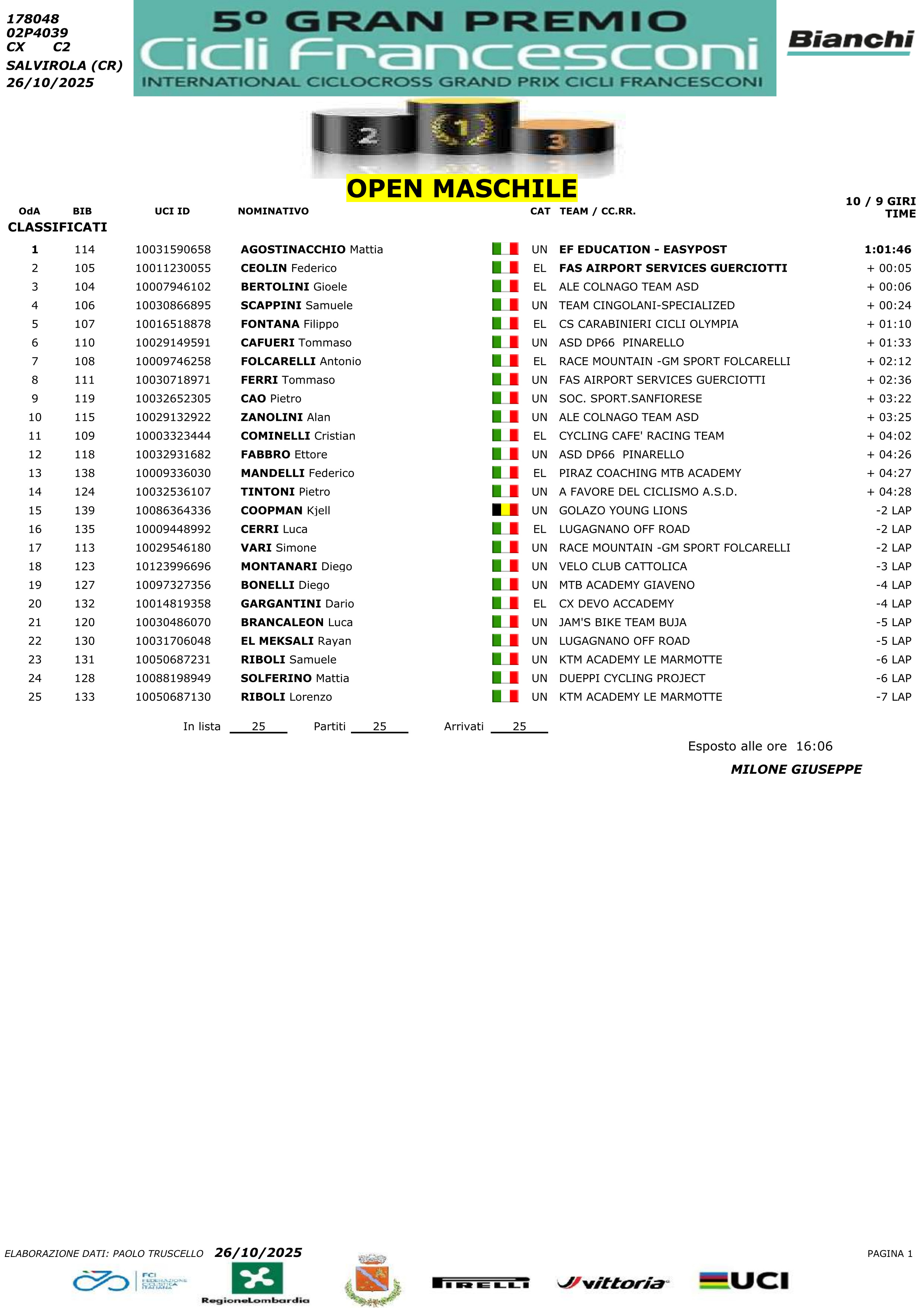 Categorie UCI, Open Maschili, con Mattia Agostinacchio (EF Education-Easypost) davanti a Federico Ceolin (Fas Airport Services-Guerciotti) e al terzo posto Gioele Bertolini (Ale Colnago Team Asd),