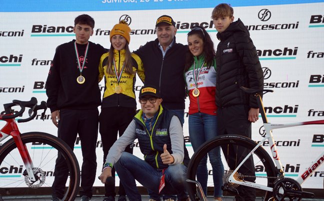 Juniores con l’accoppiata del Team Cingolani-Specialized Filippo Grigolini e Tommaso Cingolani nell’ordine davanti a Pietro Deon (Asd DP66-Pinarello) e Ivan Colombo (SC Alfredo Binda) al settimo posto; Pietro Mantasia al decimo sempre della Squadra diretta da Alessia Della Valle (SC Alfredo Binda).
