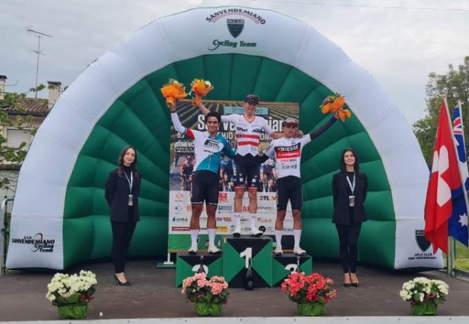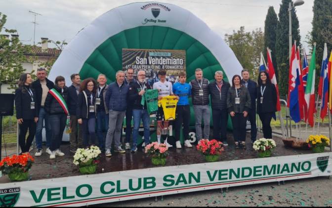 Ventidue anni ancora da compiere essendo nato il giorno 11 settembre 2003, Marco Schrettl , Campione Nazionale d’Austria categoria Under 23 in livrea Tirol Ktm Cycling Team vince in solitaria la 18° edizione del Trofeo Città di San Vendemiano valido anche per l’assegnazione del 65° Gran Premio Industria & Commercio precedendo al traguardo il messicano Sosè Prieto De Luna (Petrolike-Sidermec) di 9″ che ha battuto allo sprint un plotoncino di inseguitori comprendenti anche l’azzurro del ciclocross Filippo Agostinacchio (3°) della Biesse-Carrera-Premac e il varesino di Busto Arsizio Filippo Turconi, (4°) del VF Group Bardiani – CSF Faizanè) e all’8° posto l’abruzzese Lorenzo Masciarelli (MBH Bank-Ballan- CSB-Colpak) mentre a 13″ sopraggiunge Lorenzo Nespoli (MBH Bank-Ballan-Csb-Colpak) al 9° posto e, a completare la …quasi….top ten di giornata all’11° piazza Alessandro Borgo (Bahrain Victorious Development).