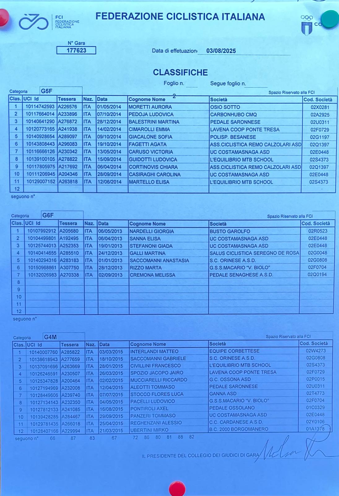 1)Clarissa Sandrinelli (SC Orinese); 2)Chiara Civilini (L’Equilibrio Mtb); 3)Marta Fagetti (Remo Calzolari); 4)Giada Ricci (Pedale Senaghese).