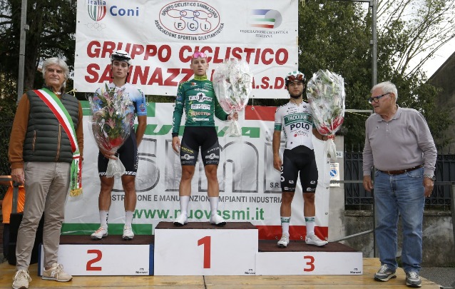 Lorenzo Magli 23 anni di Montelupo Fiorentino, in livrea della Gallina-Lucchini-Ecotek, sfodera una volata da manuale a meno di 100 metri dal traguardo del 71° Gran Premio Ciclistico di Sannazzaro ingaggiando un elettrizzante testa a testa con Riccardo Fabbro (Trevigiani) e Andrea Scarso (Padovani) che lo hanno “scortato” sul podio di questa gara organizzata dal Gruppo Ciclistico Sannazzaro con la regia di Gianbattista De Antoni presidente del Comitato Provinciale F.C.I. di Pavia con la collaborazione della Polizia Locale e varie Associazioni come la “Pro Loco”, “Circolo Culturale e Ricreativo” e numerosi Volontari cittadini di Sannazzaro e dintorni.