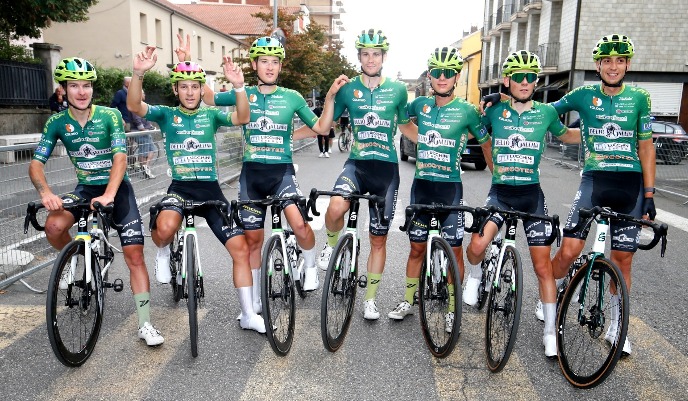Ed è subito “Azione” con Francesco Sangalli (Rime Drali), Matteo Falchetti (Beltrami Tsa) e Michael Belleri (Delio Gallina) che lanciano una fuga che durerà 93 chilometri, vantaggio massimo sugli inseguitori 1’32”.
