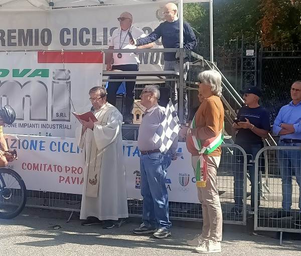 Come da tradizione sulla linea di partenza ci sono anche il Sindaco Roberto Zucca, il Presidente della Federciclismo pavese Gianbattista De Antoni e il Parroco Don Luca che ha impartito la Benedizione del Cristiano agli spettatori e a tutta la Carovana con gli 86 corridori pronti a scattare subito dopo che il sindaco cittadino ha abbassato la bandierina a scacchi per inanellare il primo dei 26 giri del circuito interamente pianeggiante, tracciato nei dintorni di Sannazzaro.