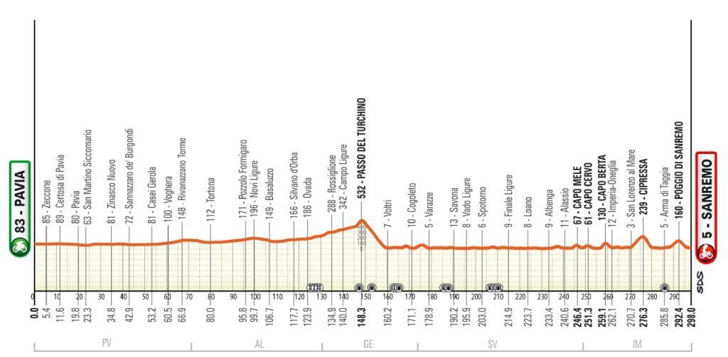 .Ore 12,30 : Superato il giro di boa dei meno 200 km all’arrivo, i 9 fuggitivi lasciano la città di Novi Ligure con un vantaggio di 2’35” sul gruppo inseguitore che, praticamente dal via è costantemente tirato dallo svizzero Silvain Dillier (Alpecin). Km percorsi 101,500 e la media è di poco superiore ai kmh 45,00 dopo 2 ore di corsa.