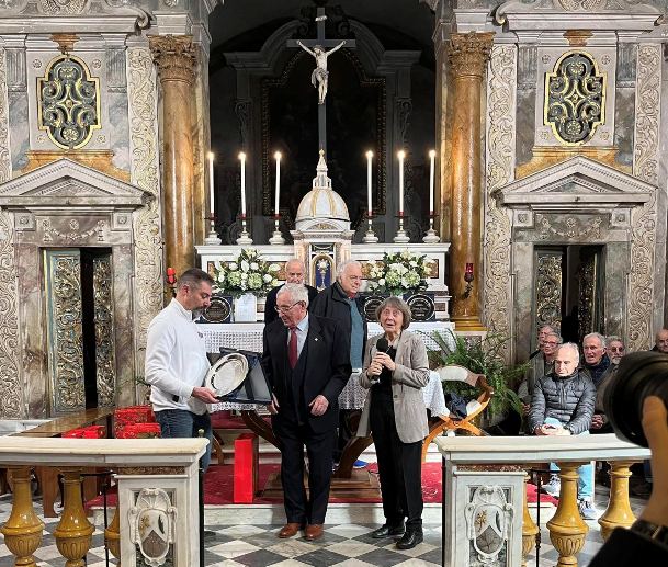 Dopo la celebrazione della Santa Messa sono stati consegnati i vari riconoscimenti. Assente Francesco Matteoli campione mondiale, europeo e italiano su pista nel 2025 impegnato nella gara elite-under 23 al Mugello, il premio è stato ritirato da Luca Menichetti presidente del Comitato Regionale Toscana di ciclismo; gli altri riconoscimenti a Piero Pieroni per l’apporto dato al ciclismo nei vari ruoli ricoperti, a Mariella Zoppi per i 1.000 libri assegnati al Club Glorie sulla storia del ciclismo toscano, a Wilmo Francioni per le sue vittorie al Giro d’Italia. Il premio a Vittorio Chiarini per l’aiuto e la devozione in corsa prestata al suo capitano Franco Bitossi, è stato ritirato dal sindaco di Marradi, Tommaso Triberti.