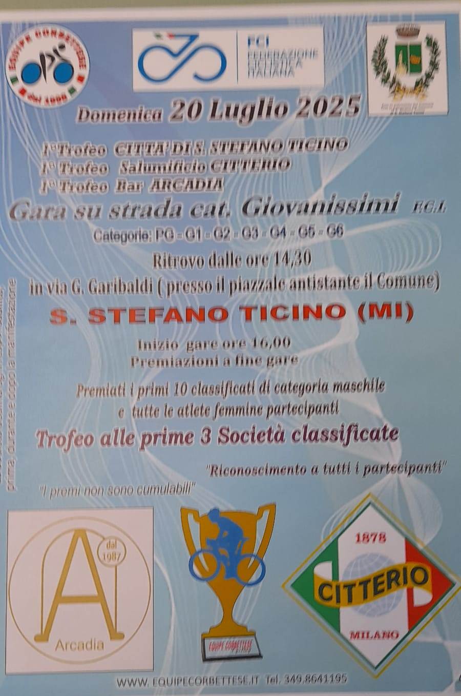 Domenica 20 luglio a Santo Stefano Ticino in provincia di Milano, l’Equipe Corbettese del Presidente Enrico Sangalli, organizzerà una gara ciclistica riservata alle categorie dei Giovanissimi aperta ai due sessi.