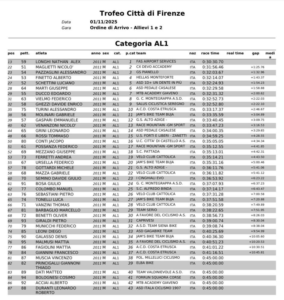 Ricordiamo anche che Alex Nathan Longhi nella stagione su strada in maglia GS Prealpino ha conquistato tre posti d’onore, tre terzi gradini sul podio e innumerevoli top-ten e nella classifica Nazionale Esordienti 2° anno stagione 2025 su strada occupa la 42° posizione con punti 30.