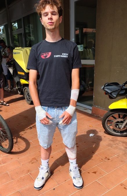 “No non me le sono procurate in gara, risponde molto rilassato il giovane corridore.” che prosegue :