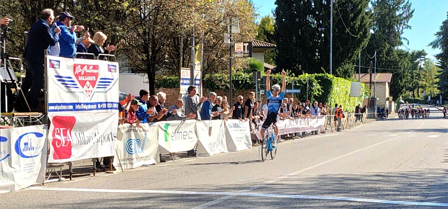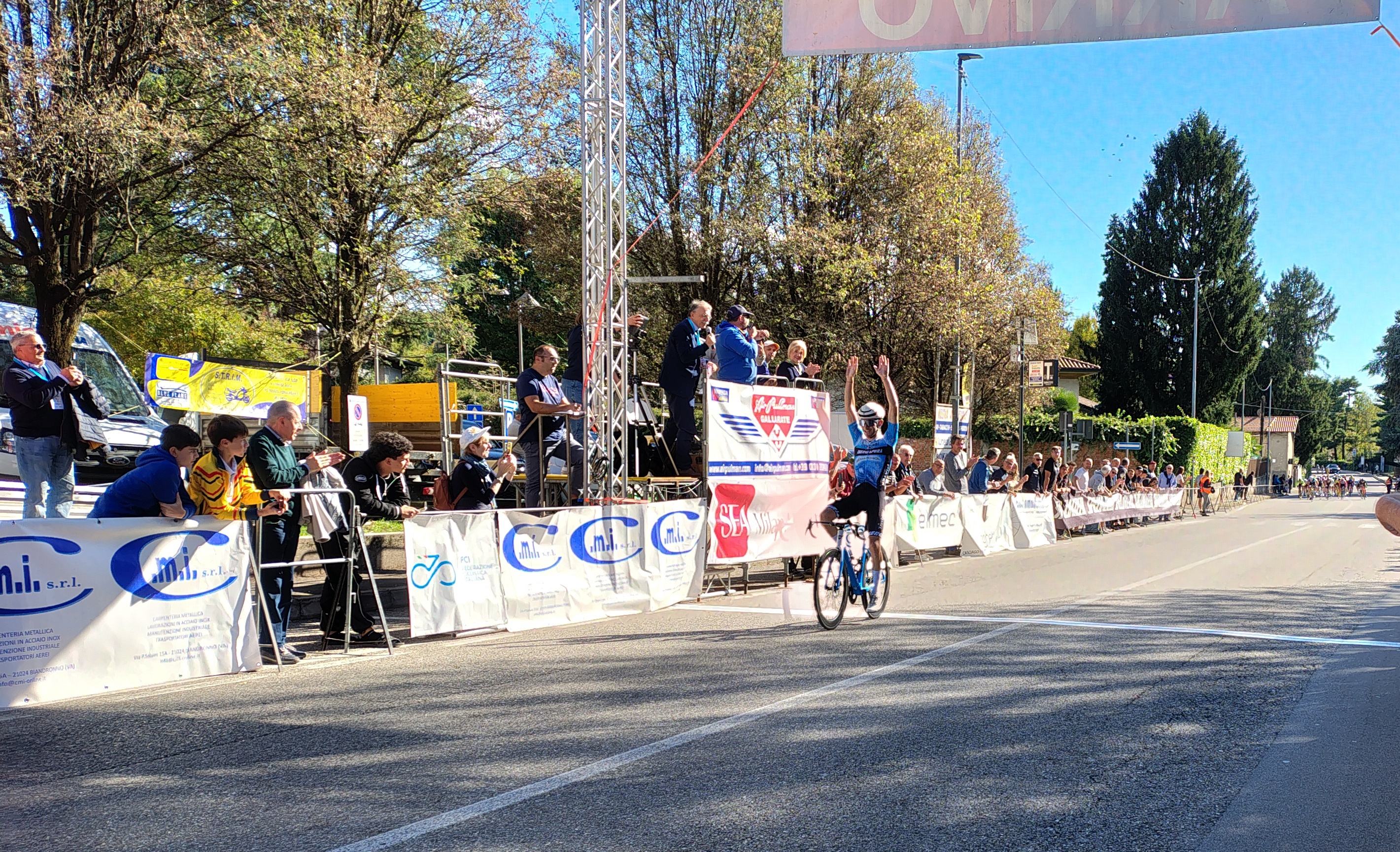 Ma non cedono ancora né il danese Lock (Generalstore) né il toscano Matteo Gialli (Hopplà) e alla fine chi “coglie l’attimo” è il bresciano in maglia della Trevigiani Riccardo Perani che scatta, si avvantaggia di quei pochi secondi che a soli 1000 metri dalla linea bianca sono fatali al resto del gruppo ma osannanti sportivamente per l’atleta Riccardo Perani (UC Trevigiani) che, venuto a conoscenza che il record detenuto in quanto a numero di vittorie è di 3 successi per Wladimiro Palazzi (1965/66/67 in maglia VC Luigi Ganna – Varese) ha dato appuntamento all’Organizzatore del Trofeo Giovanni Oldrini, Cav. Silvio Pezzotta, all’edizione del GP di Somma anno 2026.