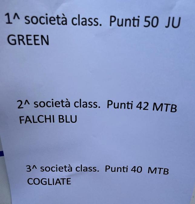 2° Società con punti 42 la MTB Falchi Blu;