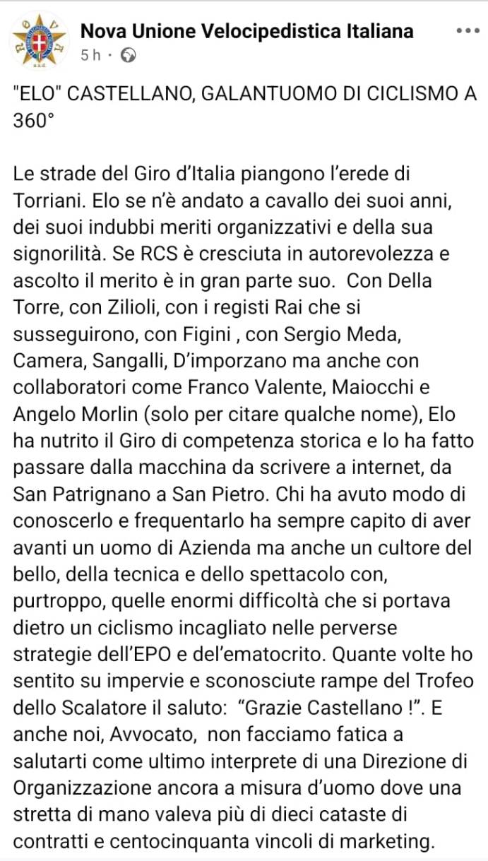 .la Redazione di pedaletricolore.it si associa alle parole di Carlo Delfino e porge sentite condoglianze a tutta la Famiglia Castellano.