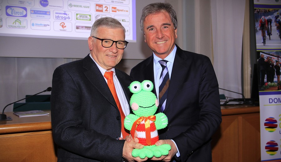Minervino e Pella presentano la Mascotte del Trofeo Alfredo Binda (Foto Ossola)
