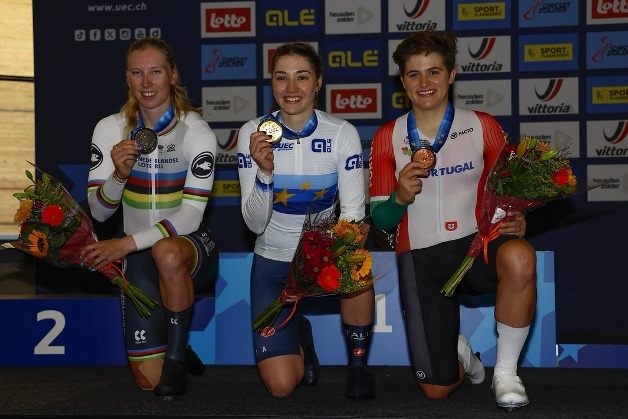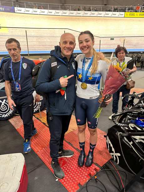 L’azzurra regala all’Italia il primo titolo della rassegna continentale vincendo davanti alla campionessa del mondo Wiebes. Bene i quartetti, che domani affronteranno il primo turno